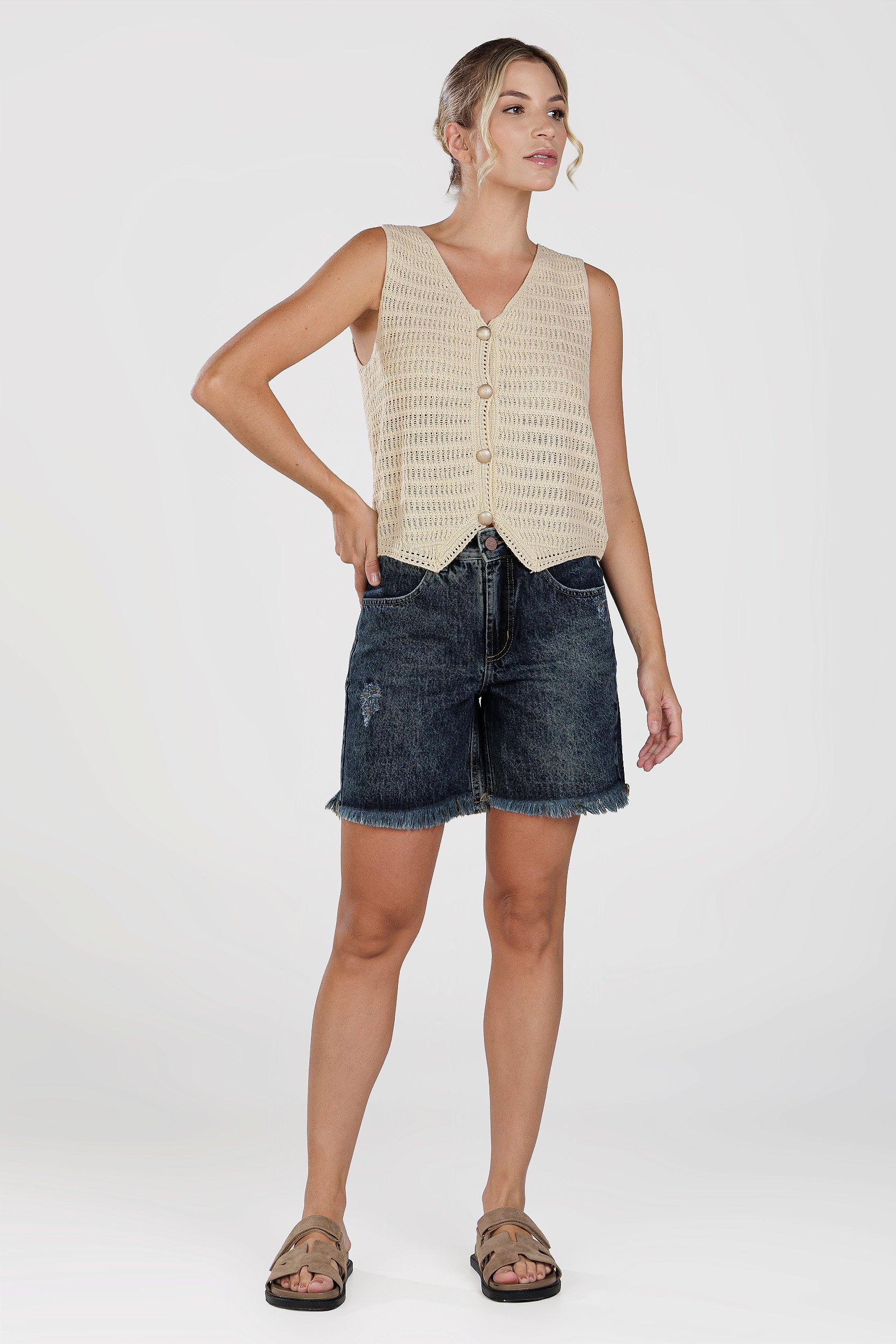 A Bermuda Jeans Feminina Barranquilla da Santé Denim é a escolha perfeita para quem busca um visual moderno e cheio de personalidade. Sua modelagem de cintura intermediária oferece um caimento impecável que se adapta a diversas ocasiões.