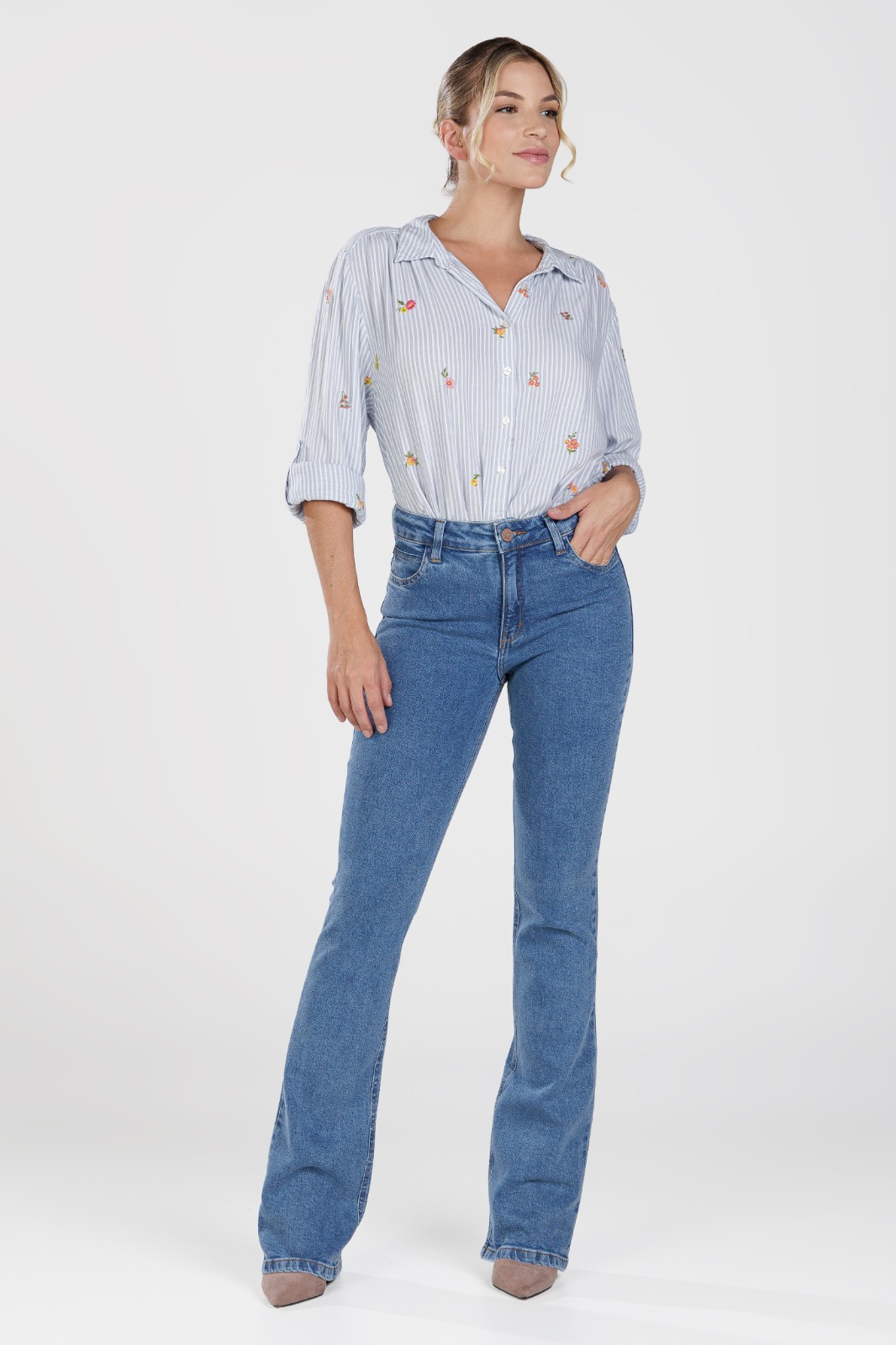 A Calça Jeans Feminina Boot Cut Bogotá da Santé Denim é a escolha perfeita para quem busca um visual atemporal e cheio de personalidade. Sua modelagem Boot Cut de cintura intermediária oferece um caimento impecável que se adapta a diversas ocasiões.